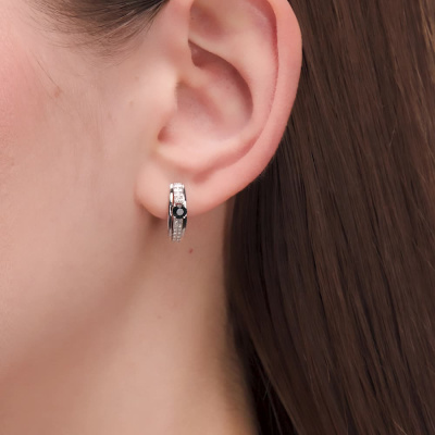 Серьги с 40 бриллиантами природными, 0.1 карат, огранка круг 17 граней, цвет 2, чистота 2, тип огранки А; 2 сапфирами природными, 0.43 карат, цвет 2, чистота 2, тип огранки В; Белое золото 585 пробы.