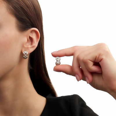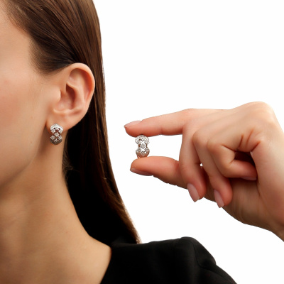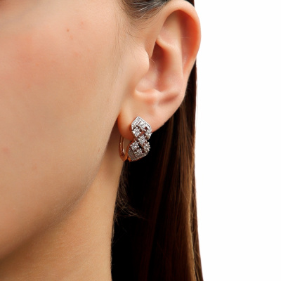 Серьги с 56 бриллиантами природными, 0.53 карат, огранка круг 57 граней, цвет 3, чистота 6, тип огранки А; 44 бриллиантами природными, 0.13 карат, огранка круг 17 граней, цвет 2, чистота 2, тип огранки А; Розовое золото 585 пробы.