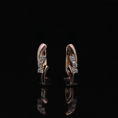 Серьги с 2 бриллиантами природными, 0.06 карат, огранка круг 57 граней, цвет 3, чистота 6, тип огранки А; 2 бриллиантами природными, 0.04 карат, огранка круг 57 граней, цвет 3, чистота 6, тип огранки А; 2 бриллиантами природными, 0.02 карат, огранка круг 57 граней, цвет 3, чистота 6, тип огранки А; Розовое золото 585 пробы.