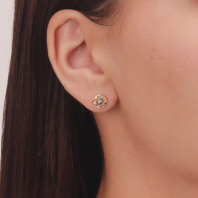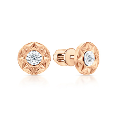 Серьги с 2 бриллиантами природными, 0.02 карат, огранка круг 57 граней, цвет 3, чистота 6, тип огранки А; Розовое и белое золото 585 пробы.