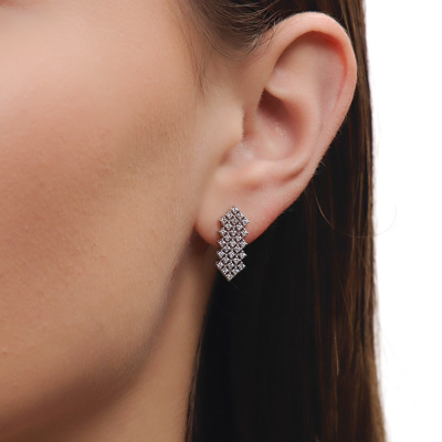 Серьги с 58 бриллиантами природными, 0.55 карат, огранка круг 57 граней, цвет 3, чистота 6, тип огранки А; Белое золото 585 пробы.