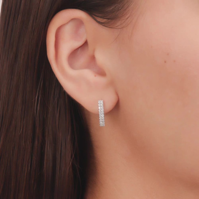 Серьги с 40 бриллиантами природными, 0.38 карат, огранка круг 57 граней, цвет 3, чистота 6, тип огранки А; Белое золото 585 пробы.