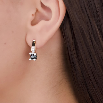 Серьги с 6 бриллиантами природными, 0.1 карат, огранка круг 57 граней, цвет 3, чистота 6, тип огранки А; 2 сапфирами природными, 1.02 карат, цвет 2, чистота 2, тип огранки В; Розовое и белое золото 585 пробы.