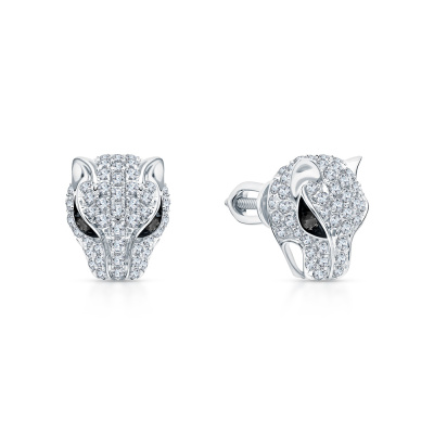 Серьги с 94 бриллиантами природными, 0.75 карат, огранка круг 57 граней, цвет 4, чистота 6, тип огранки А; 40 бриллиантами природными, 0.15 карат, огранка круг 17 граней, цвет 2, чистота 3, тип огранки Б; 4 бриллиантами черными природными облагороженными, 0.06 карат, огранка круг 57 граней, цвет 7, чистота 6, тип огранки А; Белое золото 585 пробы.