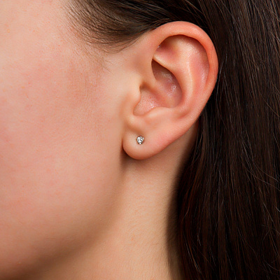 Серьги с 2 бриллиантами природными, 0.08 карат, огранка круг 57 граней, цвет 3, чистота 6, тип огранки А; Розовое золото 585 пробы.