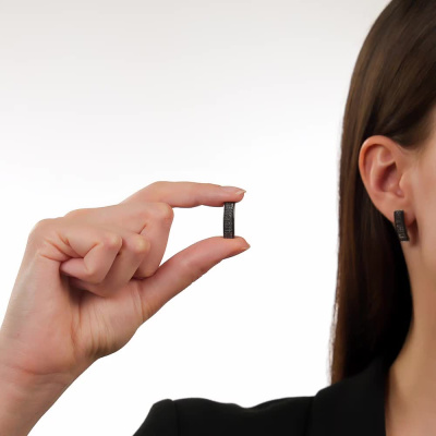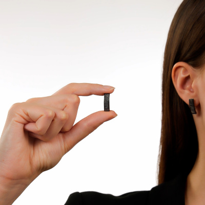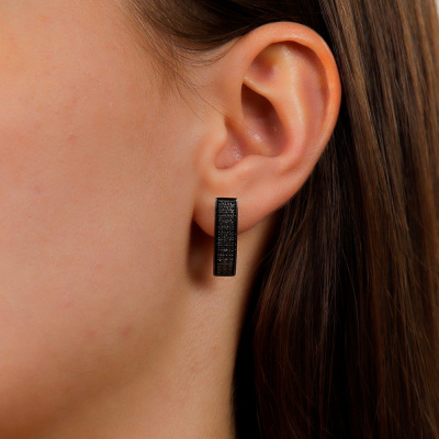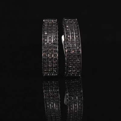 Серьги с 142 бриллиантами черными природными облагороженными, 0.56 карат, огранка круг 57 граней, цвет 7, чистота 6, тип огранки А; Белое золото 585 пробы.