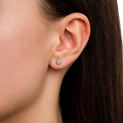Серьги с 2 бриллиантами природными, 0.44 карат, огранка круг 57 граней, цвет 4, чистота 7, тип огранки А; Белое золото 585 пробы.