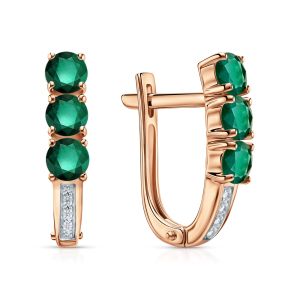 Золотые серьги с бриллиантами природными и изумрудами природными