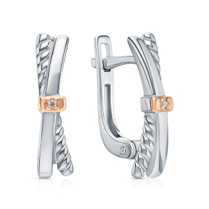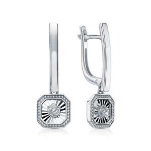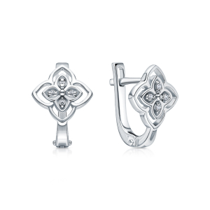 Серебряные серьги с бриллиантами природными и сапфирами природными