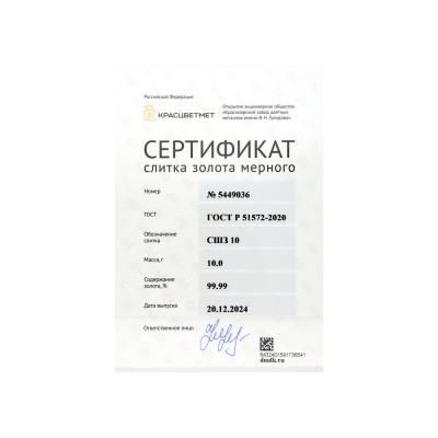 Золото всегда было и остается символом стабильности, защищая от инфляции и экономических рисков. Это долговечный актив и уникальный подарок для тех, кто думает о будущем. Каждое изделие продается в элегантной упаковке, которая состоит из конверта, защитной прозрачного блистера для слитка и номерного золотого сертификата, который является неотъемлемой частью инвестиционного золотого слитка. Приобрести Инвестиционный слиток можно только в торговой точке. Оплата онлайн недоступна. Заказать Инвестиционный слиток можно в торговую точку нашей сети. Обязательно при приобретении Инвестиционного слитка в торговой точке необходим паспорт. Выгодная инвестиция. Инвестиционный слиток продается без НДС 22%. Обязательно сохраняйте нетронутой упаковку. Инвестиционные слитки (драгоценные металлы) можно продавать в банки, которые имеют специальную лицензию Центробанка на операции с драгметаллами. Российские банки, которые занимаются продажей и покупкой слитков: Сбербанк, Тинькофф, Россельхозбанк, Газпромбанк, ВТБ, Совкомбанк.