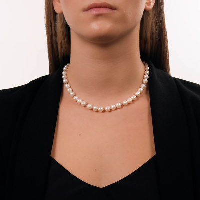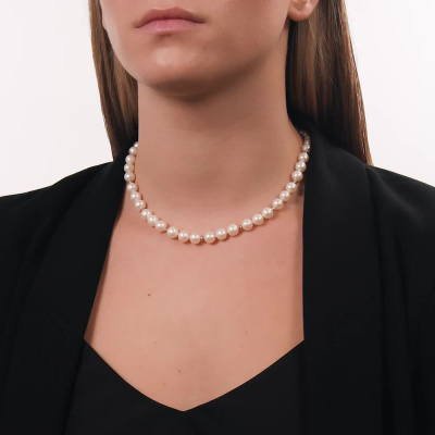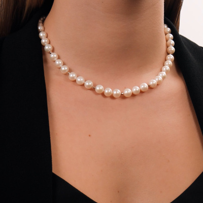 Бусы, вставка: жемчуг пресноводный культивированный белый; Розовое золото 585 пробы.