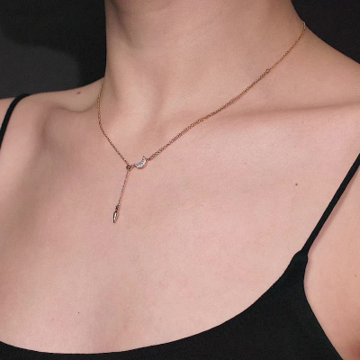 Шейное укр. с 22 бриллиантами природными, 0.05 карат, огранка круг 17 граней, цвет 2, чистота 3, тип огранки Б; Желтое золото 585 пробы.