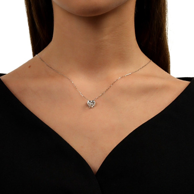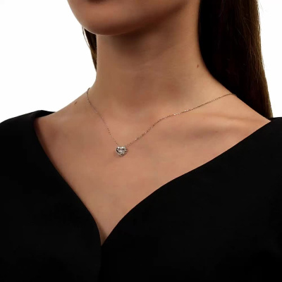 Шейное укр. с 1 бриллиантом природным, 0.03 карат, огранка круг 57 граней, цвет 3, чистота 6; Белое золото 585 пробы.
