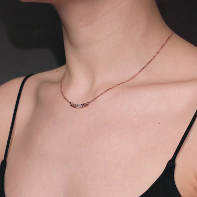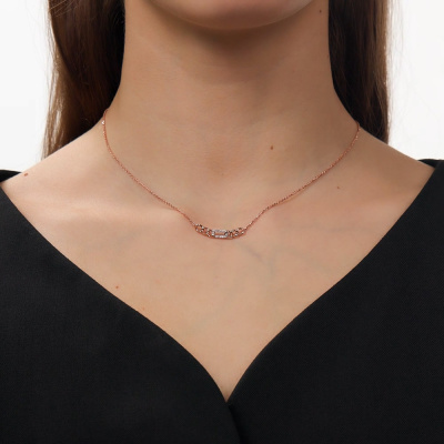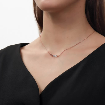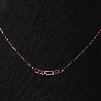 Шейное укр. с 16 бриллиантами природными, 0.05 карат, огранка круг 17 граней, цвет 2, чистота 3, тип огранки Б; Розовое золото 585 пробы.