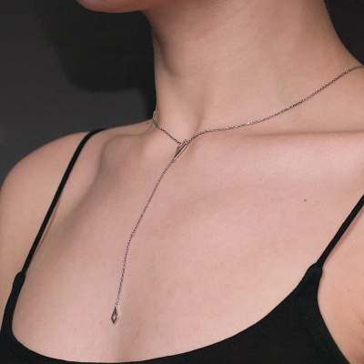 Шейное укр. с 9 бриллиантами природными, 0.03 карат, огранка круг 17 граней, цвет 2, чистота 3, тип огранки Б; Белое золото 585 пробы.