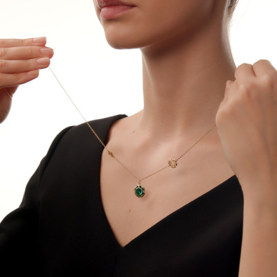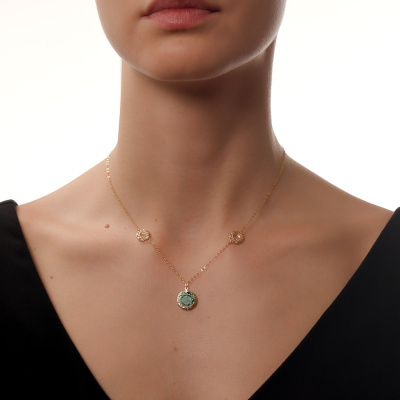 Шейное укр. с 2 перламутровыми мозаиками; Желтое золото 585 пробы.