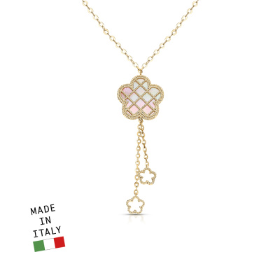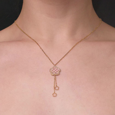 Шейное укр. с 1 перламутром розовым; Желтое золото 585 пробы.