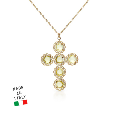 Роскошь, которая поражает воображение. Шейное украшение из жёлтого золота 585 пробы со вставками из лимонного кварца выполнено лучшими итальянскими ювелирами. Стильный дизайн не оставит ни одну покупательницу равнодушной. Италия славится своим высоким ювелирным искусством. В коллекции Золото Италии Вы найдете необычные, стильные, шикарные украшения выполненные в современных технологиях.