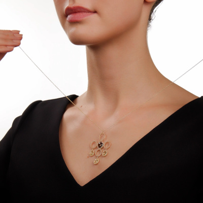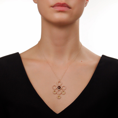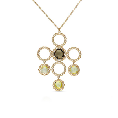 Роскошь, которая поражает воображение. Шейное украшение из жёлтого золота 585 пробы со вставками из дымчатого и лимонного кварца выполнено лучшими итальянскими ювелирами. Стильный дизайн не оставит ни одну покупательницу равнодушной. Италия славится своим высоким ювелирным искусством. В коллекции Золото Италии Вы найдете необычные, стильные, шикарные украшения выполненные в современных технологиях.