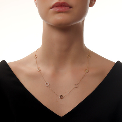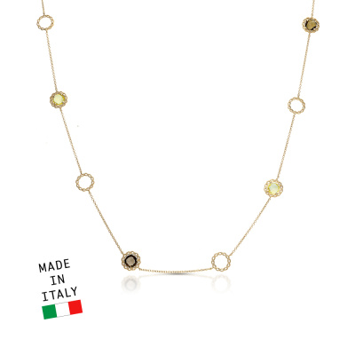 Роскошь, которая поражает воображение. Шейное украшение из жёлтого золота 585 пробы со вставками из дымчатого и лимонного кварца выполнено лучшими итальянскими ювелирами. Стильный дизайн не оставит ни одну покупательницу равнодушной. Италия славится своим высоким ювелирным искусством. В коллекции Золото Италии Вы найдете необычные, стильные, шикарные украшения выполненные в современных технологиях.