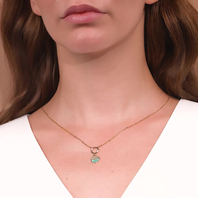 Шейное укр. с 1 перламутром белым природным; 1 перламутром зеленым природным; Желтое золото 585 пробы.