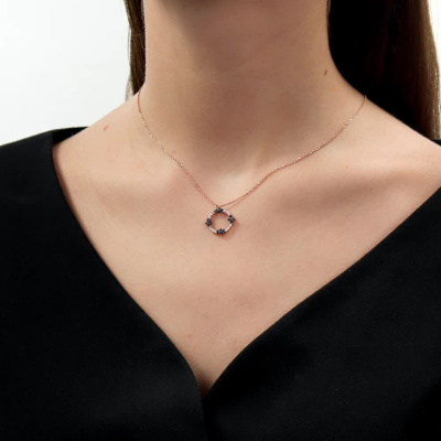 Шейное укр. с 16 бриллиантами природными, 0.06 карат, огранка круг 17 граней, цвет 2, чистота 2, тип огранки А; 16 сапфирами синтетическими, 0.3 карат; Розовое золото 585 пробы.