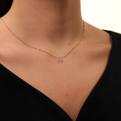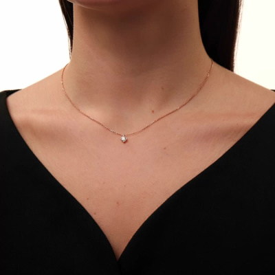 Шейное укр. с 1 бриллиантом, 0.403 карат, огранка круг 57 граней, цвет 5, чистота 7, тип огранки А; Розовое золото 585 пробы.