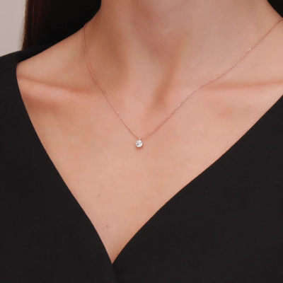 Шейное укр. с 1 бриллиантом природным, 0.4 карат, огранка круг 57 граней, цвет 5, чистота 7, тип огранки А; Розовое золото 585 пробы.