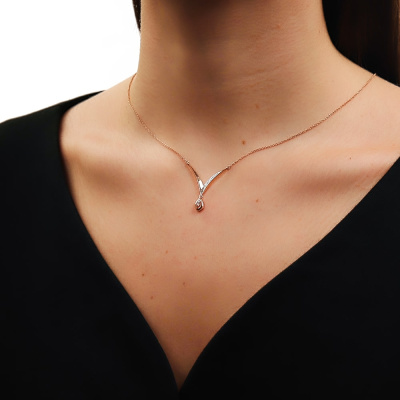 Шейное укр. с 1 бриллиантом природным, 0.01 карат, огранка круг 57 граней, цвет 3, чистота 6, тип огранки А; 1 бриллиантом природным, 0.007 карат, огранка круг 57 граней, цвет 3, чистота 6, тип огранки А; 6 бриллиантами природными, 0.02 карат, огранка круг 17 граней, цвет 2, чистота 2, тип огранки А; 2 бриллиантами природными, 0.004 карат, огранка круг 17 граней, цвет 2, чистота 2, тип огранки А; Розовое золото 585 пробы.
