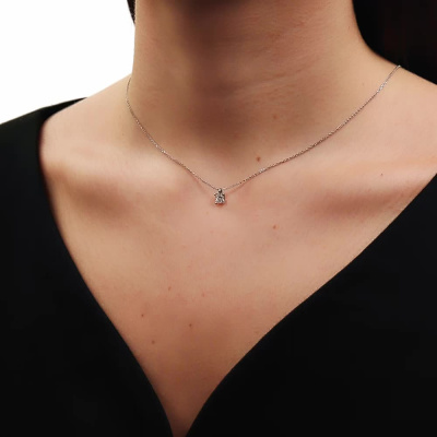 Шейное укр. с 1 бриллиантом природным, 0.4 карат, огранка принцесса 65 граней, цвет 4, чистота 6, тип огранки А; Белое золото 585 пробы.