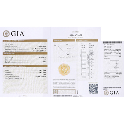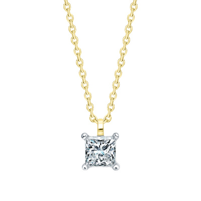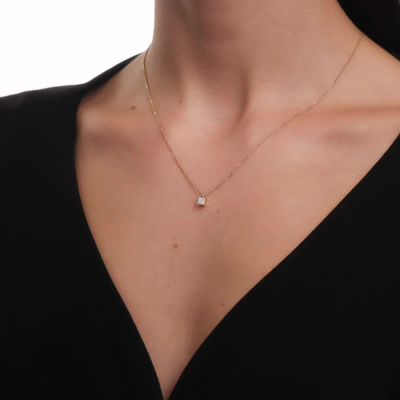 Шейное укр. с 1 бриллиантом природным, 0.41 карат, огранка принцесса 65 граней, цвет 4, чистота 6, тип огранки А; Желтое золото 585 пробы.