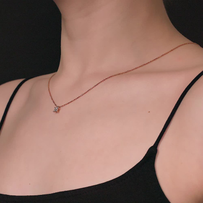 Шейное укр. с 1 бриллиантом природным, 0.41 карат, огранка принцесса 65 граней, цвет 4, чистота 6, тип огранки А; Розовое золото 585 пробы.