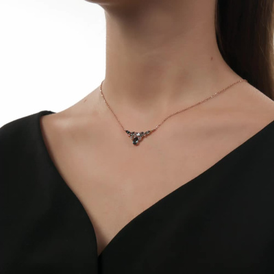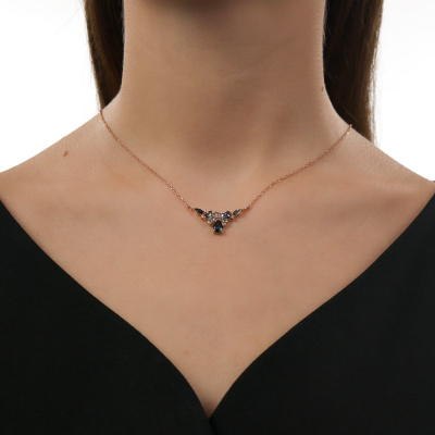 Шейное укр. с 4 бриллиантами природными, 0.02 карат, огранка круг 57 граней, цвет 3, чистота 6, тип огранки А; 2 бриллиантами природными, 0.01 карат, огранка круг 17 граней, цвет 2, чистота 2, тип огранки А; 1 топазом лондон природным, 0.7 карат; 1 топазом скай природным, 0.28 карат; 1 топазом лондон природным, 0.25 карат; 1 топазом скай природным, 0.22 карат; 3 топазами лондон природными, 0.5 карат; 1 топазом скай природным, 0.05 карат; Розовое золото 585 пробы.