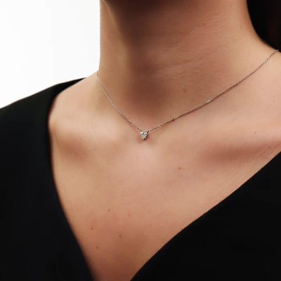 Шейное укр. с 1 бриллиантом природным, 0.5 карат, огранка сердце 57 граней, цвет 3, чистота 6, тип огранки А; Белое золото 585 пробы.