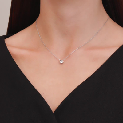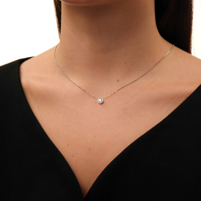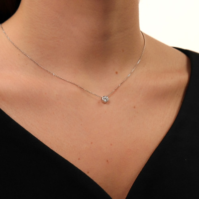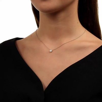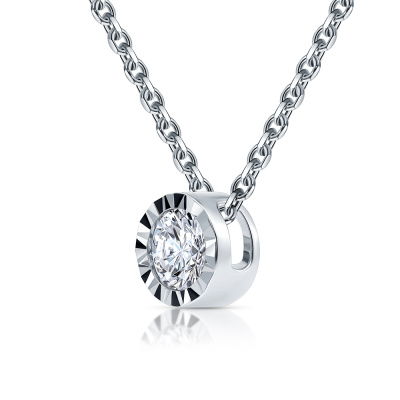 Шейное укр. с 1 бриллиантом природным, 0.25 карат, огранка круг 57 граней, цвет 3, чистота 6, тип огранки А; Белое золото 585 пробы.