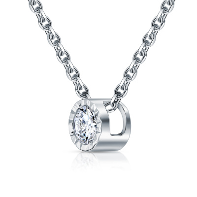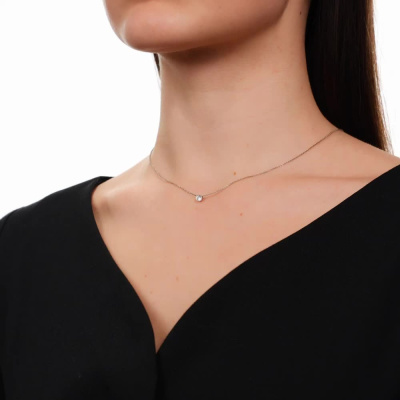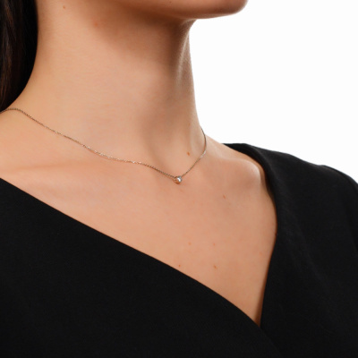Шейное укр. с 1 бриллиантом природным, 0.09 карат, огранка круг 57 граней, цвет 3, чистота 6, тип огранки А; Белое золото 585 пробы.