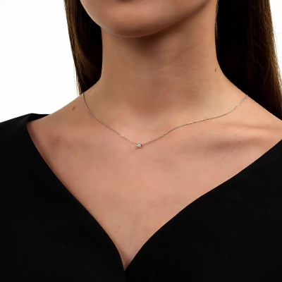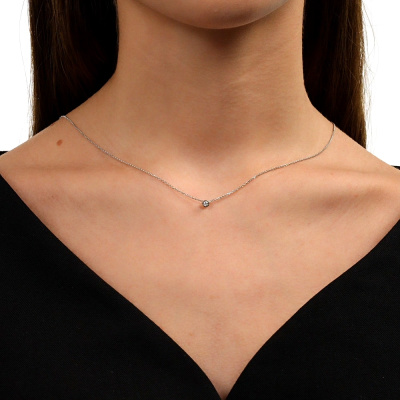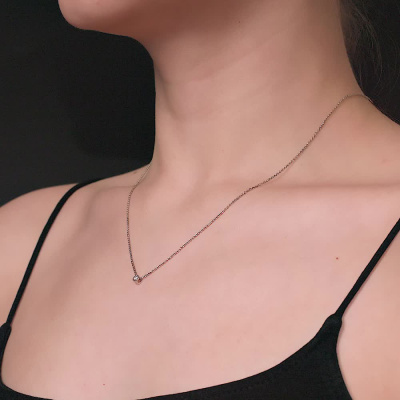 Шейное укр. с 1 бриллиантом природным, 0.05 карат, огранка круг 57 граней, цвет 3, чистота 6, тип огранки А; Белое золото 585 пробы.
