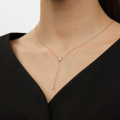 Шейное укр. с 1 бриллиантом природным, 0.06 карат, огранка круг 57 граней, цвет 3, чистота 6, тип огранки А; 13 бриллиантами природными, 0.05 карат, огранка круг 17 граней, цвет 2, чистота 2, тип огранки А; 6 бриллиантами природными, 0.01 карат, огранка круг 17 граней, цвет 2, чистота 2, тип огранки А; Розовое золото 585 пробы.
