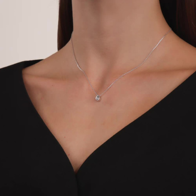 Шейное укр. с 1 бриллиантом природным, 0.003 карат, огранка круг 17 граней, цвет 2, чистота 2, тип огранки Б; Серебро 925 пробы.