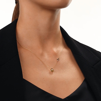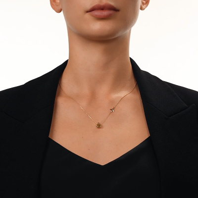 Шейное укр. с 1 кварцем лимонным природным, 0.91 карат; Желтое золото 585 пробы.