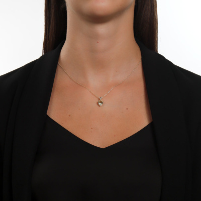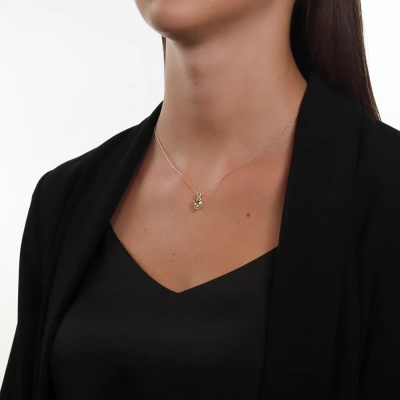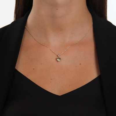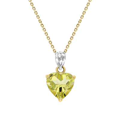 Шейное укр. с 1 кварцем лимонным природным, 1.6 карат; 1 кварцем бесцветным природным, 0.17 карат; Желтое золото 585 пробы.