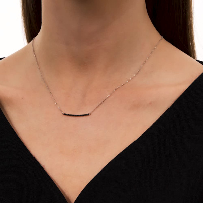 Шейное укр. с 19 бриллиантами черными природными облагороженными, 0.09 карат, огранка круг 57 граней, цвет 7, чистота 6, тип огранки А; Белое золото 585 пробы.