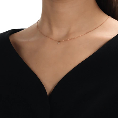 Шейное укр. с 1 бриллиантом природным, 0.1 карат, огранка круг 57 граней, цвет 3, чистота 6, тип огранки А; Розовое золото 585 пробы.