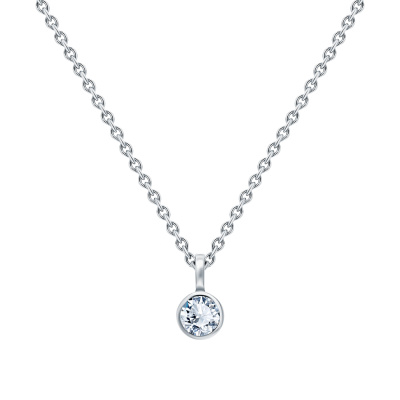 Шейное укр. с 1 бриллиантом природным, 0.11 карат, огранка круг 57 граней, цвет 3, чистота 6, тип огранки А; Белое золото 585 пробы.