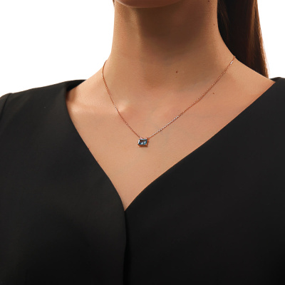 Шейное укр. с 1 топазом свисс, 1.78 карат, тип огранки Б; 8 бриллиантами, 0.01 карат, огранка круг 17 граней, цвет 2, чистота 2, тип огранки Б; Розовое золото 585 пробы.