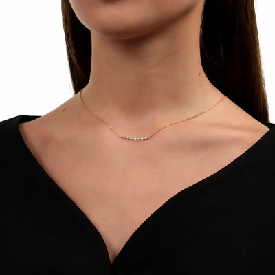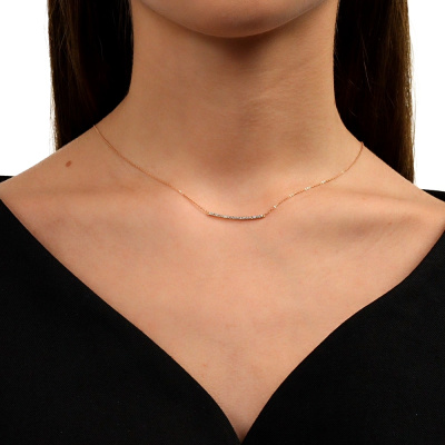 Шейное укр. с 19 бриллиантами природными, 0.089 карат, огранка круг 17 граней, цвет 2, чистота 2, тип огранки Б; Розовое золото 585 пробы.
