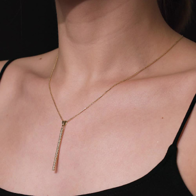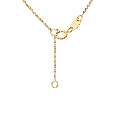 Украшение из золота 585 пробы лимонного оттенка с алмазной гранью. Алмазная огранка – это распространённый в ювелирном деле вид обработки драгоценного металла. Рисунок наносится на поверхность изделия при помощи алмазных резцов, которые придают металлу оригинальную форму. Элегантный дизайн шейного украшения из Италии подойдет для любого образа.
