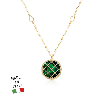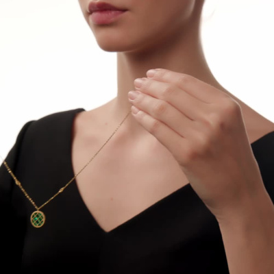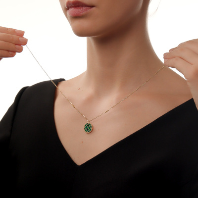 Шейное укр. с 1 перламутром зеленым природным; Желтое золото 585 пробы.