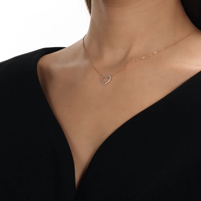 Шейное укр. с 6 бриллиантами природными, 0.03 карат, огранка круг 57 граней, цвет 3, чистота 6, тип огранки А; 8 бриллиантами природными, 0.02 карат, огранка круг 17 граней, цвет 2, чистота 2, тип огранки А; 13 бриллиантами природными, 0.02 карат, огранка круг 17 граней, цвет 2, чистота 2, тип огранки А; Розовое золото 585 пробы.