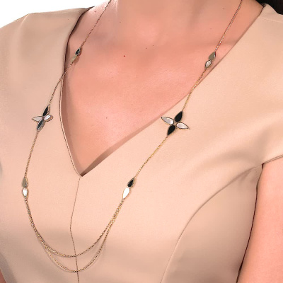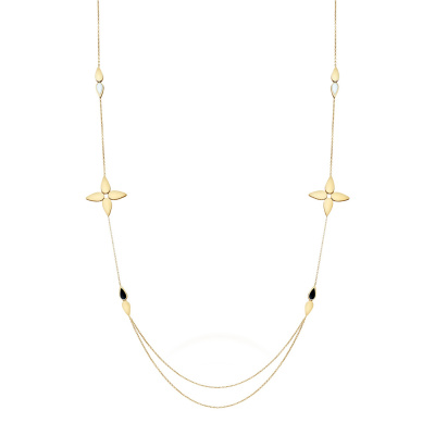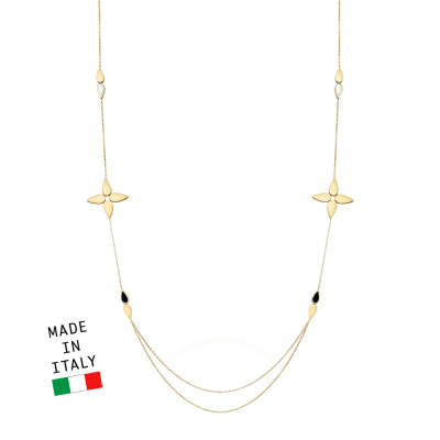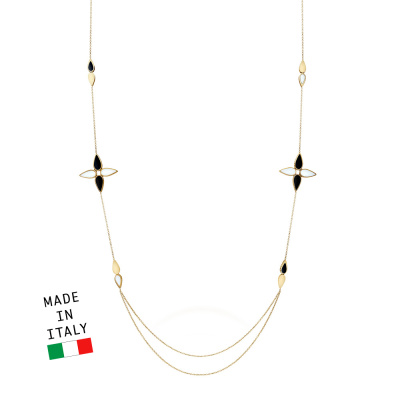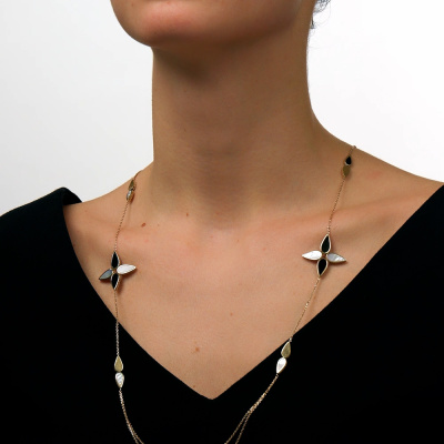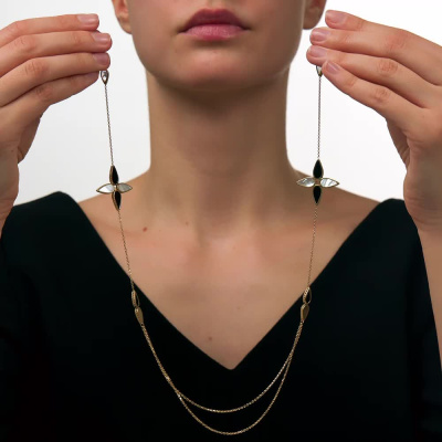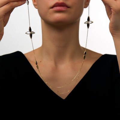 Золотое шейное украшение с перламутром природным и ониксом природным